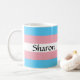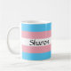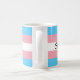 Transgender Flag encircles this mug. No need to hide, show your pride! Add your name or other message - or erase to have a plain flag.