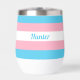 Transgender flag wine tumbler that can be customised with your name or other text. Support your trans friends with this cute gift that features the baby blue, pink, and white transgender flag colours. Personalise this pretty present in blue.