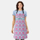 Medium-sized apron with a seamless pattern with rainbows in the colours of the transgender pride flag; pink, white, and blue on a pink background, with a customisable text template for your own name or message