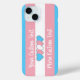 iPhone 15 Case with the transgender pride flag with little hearts in the centre of the design. Pink, white, and blue flag of the trans pride movement; with an editable text field for your name or message