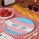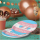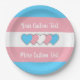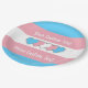 Paper plate with the transgender pride flag with little hearts in the centre of the design. Pink, white, and blue flag of the trans pride movement; with an editable text field for your name or message