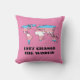 Customisable throw pillow with the map of the world in the colour of the transgender pride flag, a design on a pink background; the text 'Let's Change the World' is a template text and can be changed.