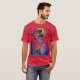 I give wanted to give this a 4 instead of a 5 because these Basic DARK T0shirts run unexpectedly SLIM or Narrow. Which is great if you do not have a potbelly, but I have a paunch. It isn't the shirt's fault that I've got a beer belly. The design and shirt itself is a quality cotton shirt. The color is more of a deep purple, but still a very pretty color. The Basic DARK T-shirts run a bit SLIMMER than the Basic Ts. The neck is a fraction narrower (or seems to be narrower) also. I'm a paunchy middle-aged woman and my neck is 12 inches (31cm) thick and the neckline fell about the same as in the photo of the man, and I had the desire to tug it a bit. So if you're a thick necked man or like loose shirts, be aware these are slimmer shirts. Once I get rid of my lockdown paunch it'll look great. The shirt washed well in cold water with no apparent bleeding. We don't have a dryer, so it hung dry. Did not shrink. Love the colors and the design. The design looks smaller on my shirt than it does on the model on-line. But still, it looks good on the shirt. The printing looks as it does on the model, just the size seems fractionally smaller. Washed garment in cold water, hung dry and design appeared unaffected.