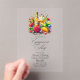 Celebrate your engagement with this vibrant transparent acrylic invitation featuring a festive Mexican fiesta theme. A tequila bottle, margaritas, vibrant flowers, limes, and avocados create a joyful and colourful design, perfect for setting the tone for a lively celebration. Fully customisable, this invitation combines elegance and fun for a memorable engagement party.