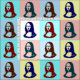 Transparent Pop Art Mona Lisa or La Gioconda, by Leonardo Da Vinci, with red lips and green eyes in vintage poster style