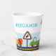 Transportation 1st Birthday Paper cup. Click on the “Customise it” button for further personalisation of this template. You will be able to modify all text, including the style, colours, and sizes.