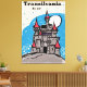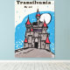 Transylvania, Romania, Old cartoon castle vacation poster print.