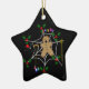 Poor little gingerbread guy. He's trapped in a spider web decorated with holiday bulbs, lights, and sprigs of holly. And now a black widow spider is getting ready to devour him.