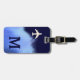 A graphic image of a white aeroplane with a straight dotted line ( flight path ). You can use the 'customise it' tool if you want to change the blue background colour. A simple travel-themed design. A good suggestion for people who work for airlines and who travel on planes