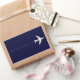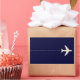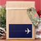 A graphic image of a white aeroplane with a straight dotted line ( flight path ). You can use the 'customise it' tool if you want to change the blue background colour. A simple travel related design. A good suggestion for people who work for airlines and who travel on planes