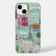 Cute illustration from an illustrative map of London and Paris city life with buildings and architecture, food and fashion. Original artwork by Caroline Bonne Müller