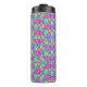 Travel mug with vibrant, kaleidoscopic pattern.