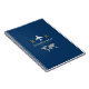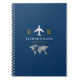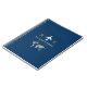 A modern and minimalist dark blue notebook for a professional who works for travel agencies, airlines, aeroplane related professions... with a simple and elegant monogram concept.