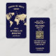 Modern Travel Planner Gold World Map Midnight Blue business card is perfect for travel bloggers, travel agents, and anyone in the travel industry. The QR code feature allows potential clients to easily scan and access your website, portfolio, or contact information. Make a lasting impression on clients and partners with this personalised and innovative business card.