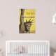 Vintage travel poster for New York, United Air Lines, showing head and extended arm of the Statue of Liberty. People peer out her crown, and in the background, the skyline of New York City. circa 1960