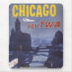 Vintage travel poster for Trans World Airlines flights to Chicago showing bridges a spanning river at night, circa 1960.