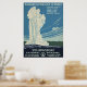 Vintage travel poster for Yellowstone National Park, shows Old Faithful erupting, circa 1938.