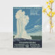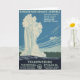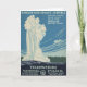 Vintage travel poster for Yellowstone National Park, shows Old Faithful erupting, circa 1938.