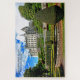 This photograph of the Scottish Sutherland family's Dunrobin Castle, north of Inverness, Scotland, has all the elements of a great jigsaw puzzle -- scenic home of an ancient Scottish clan, gardens and fountains, a gray wall, bright blue skies and roiling white clouds, all depicted in many shades and hues of rich colors. The names of the clan and castle are printed in the top left corner in contrasting fonts, in deepest gray. Jigsaw lovers can enjoy hours of pleasure working this challenging landscape puzzle.