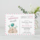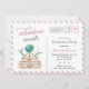Travel themed aeroplane invitation in pink and gay for a girl baby shower or sprinkle - "Adventure Awaits". Please notice that the invite is not an actual postcard and should be mailed in an envelope. If you'd like to order this design with a postcard back, please contact us.
