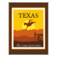 Travel Texas, the Lone Star State, cowboy riding his horse. Vintage travel illustration.