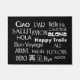 Pattern of global greetings and salutations, and sayings for travelers in black and white colours.