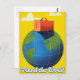 Travel the World beautiful retro style travel poster art print of a old suitcase sat on top of the earth.