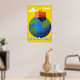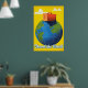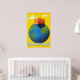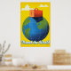 Travel the World beautiful retro style travel poster art print of a old suitcase sat on top of the earth.