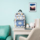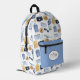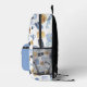 The perfect backpack for the traveller. Set on a white background, this pattern has a pattern of several travel items. In the front there’s a zipper pouch with you can customise by adding a monogram and changing the colour.