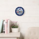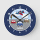 This super cute clock features a red dark navy border with white numbers. Inside is our cute illustration of cars, an aeroplane and a traffic light! Perfect for any transportation theme room, or boy toddler bedroom.