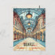 This travel postcard, in cartoonish digital illustration style, inspired by the Central Market of Budapest Hungary.
