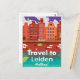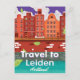 Travel to Leiden Holland cartoon travel poster. Leiden vacation travel poster print. Dutch Canals travel poster print.