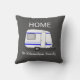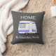 Modern dark gray travel vacation adventure pillow. Illustration of a caravan HOME family monogram name outdoor pillow.