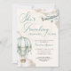 Celebrate the bride-to-be’s next great adventure with this vintage-inspired travel bridal shower invitation. Featuring whimsical details like airplanes, hot air balloons, and watercolor clouds, this design captures the excitement of wanderlust and romance. Perfect for travel enthusiasts, it blends soft aqua and gold tones with elegant script for a timeless, adventurous look. The "Adventure Awaits" theme makes it ideal for destination celebrations or bridal showers with a global twist. Whether the bride dreams of road trips or honeymoons abroad, this invitation sets the perfect tone for a celebration full of love and exploration. Customize yours today to start her journey in style!