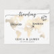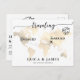 Announce your journey into marriage with this save the date postcard featuring a gold world map and text, "Travelling from Engaged to Married." This travel-inspired design is perfect for sharing your wedding date with family and friends. Personalise it with event details to ensure guests mark their calendars. A stylish and convenient way to set the tone for your special day.