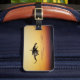 The front of the luggage tag displays a digital painting of a man riding a dragon through the sky during sunset, with a treasure chest. The back of the luggage tag should have your contact information printed on it. You can do this by clicking on "Customise it!".