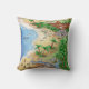 A treasure map pillow with sharks, bones beach, and skull cave.