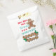 "Treat yourself" Christmas ecru favor bags with gingerbread man and heart-shaped gingerbread cookies with "Merry Xmas" icing, decorated with holly.