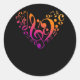 Treble Bass Clef Musical Notes Colourful Heart Classic Round Sticker