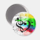 Treble clef and bass clef symbols are combined to form a musical heart, with watercolor washed sheet music as a background. Easy way for classical musician, songwriter, bass player, artist, singer, composer to express love for music. Vibrant rainbow-coloured music lover magnet is a practical gift idea for a music teacher, bassist, orchestra player, DJ, music student, choir member, string instrument player, or musician, including banjo, bass, cello, harp, guitar, piano, ukulele, viola, violin.