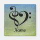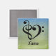 This composite bass clef and treble clef musical heart design is presented over a soft blue and green vintage sheet music background. Personalised magnet makes a thoughtful gift for any music teacher, composer, music student, singer, songwriter, music lover, DJ, or musician. Display this music themed magnet any time you want to share your appreciation for music. Customise with a name, musical instrument, or any other text. Design tip: Size and position text to float pleasingly in the space below the heart image.