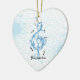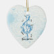 Blue scrollwork sol note key custom ornament, featuring the sol note key in blue scrollwork style and black notes.