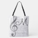Treble Clef Music Note Monogram with Name White Tote Bag