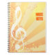 There's no mistaking what this notebook might be used for. A treble clef overlays bright yellow-orange beams with swirls overprinting. Add your own message to use this as a songwriting notebook, add a name to personalise it for music class or use it as a journal. Available in alternate colours with matching products.