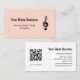 Professional music lessons business card, with a treble clef symbol on a rose gold background. With black customisable lettering, you customise with your own information. You also add your website to allow for connection with a QR code. Great for promoting your music lessons or performing business.