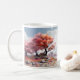 The design features a river and majestic tree, its boughs reaching towards a sky filled.