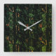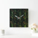 Tree bark under green hammered glass square wall clock