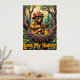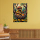This dynamic painting presents a bear, the "Tree-Bop Bear," sporting a firefighter helmet and sunglasses, masterfully playing an acoustic guitar. His stage is a large bird's nest, complete with a jar of honey , set within a vibrant forest. The thick, expressive brushwork adds a tangible quality to the scene, making the "Love My Honey" message resonate with the raw passion of the performance.
