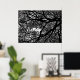 Tree branches silhouetted against the sky in black and white. This is a dark and moody scene. Would also go well with Halloween decor.