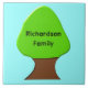 This awesome tile features a fun digital image of a tree with a green top and brown trunk on a sky blue background. There is customisable text on the tree allowing you to type in your family name to personalise this lovely tile.